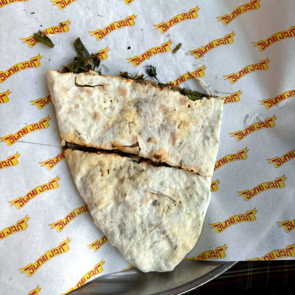 I Zhingyalov hats sono sottili focaccine ripiene di un misto di erbe fresche e aromatiche.