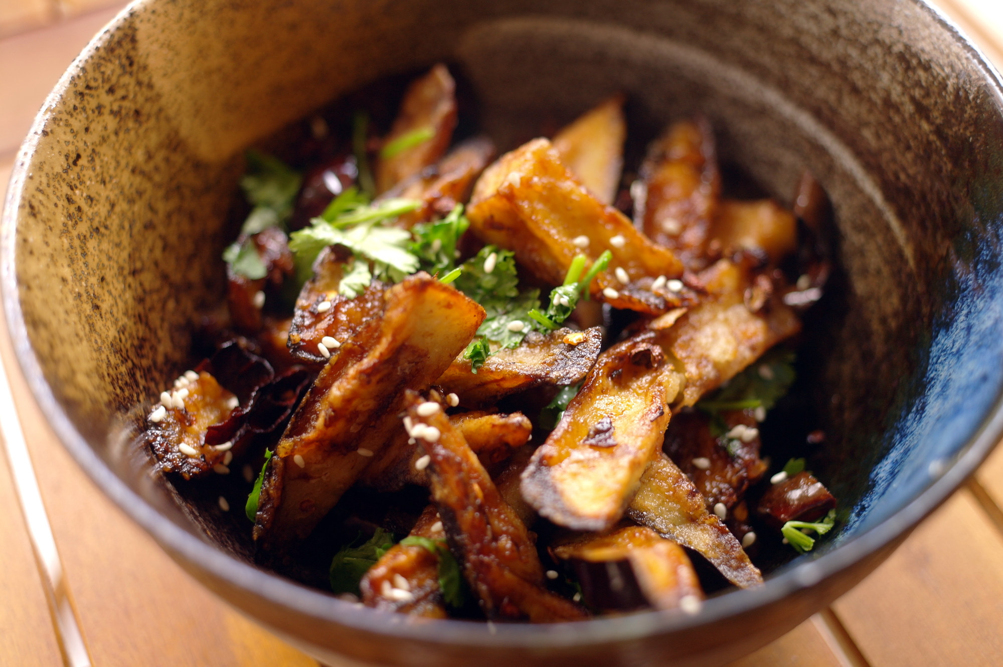 Feng Wei Qiezi (Stir-fry di melanzane amidate fritte) - 风味茄子