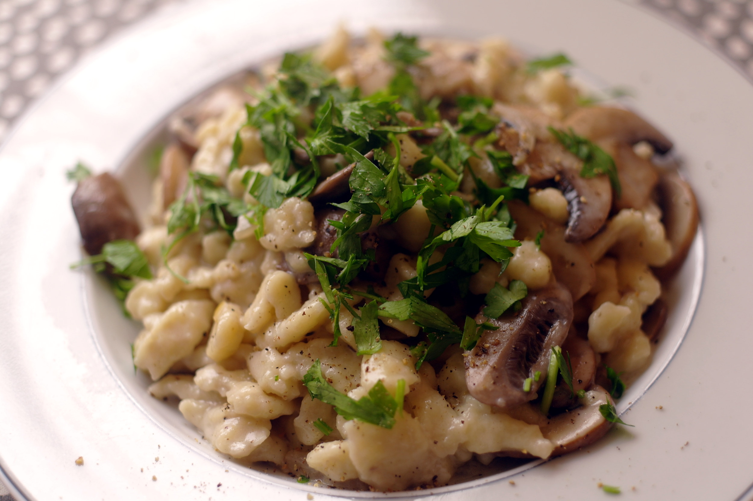 Spätzle mit Pilzrahmsoße (Spätzle con salsa di funghi)