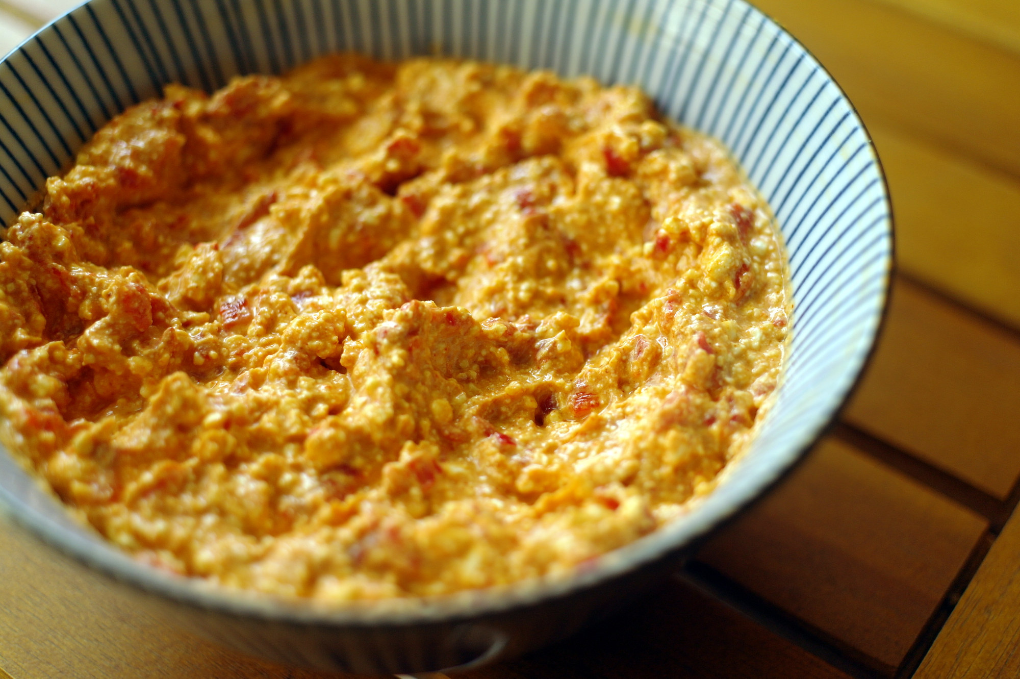 Sbriciolare il formaggio e mescolarlo tutti gli altri ingredienti, impastando bene fino a ottenere una consistenza omogenea.