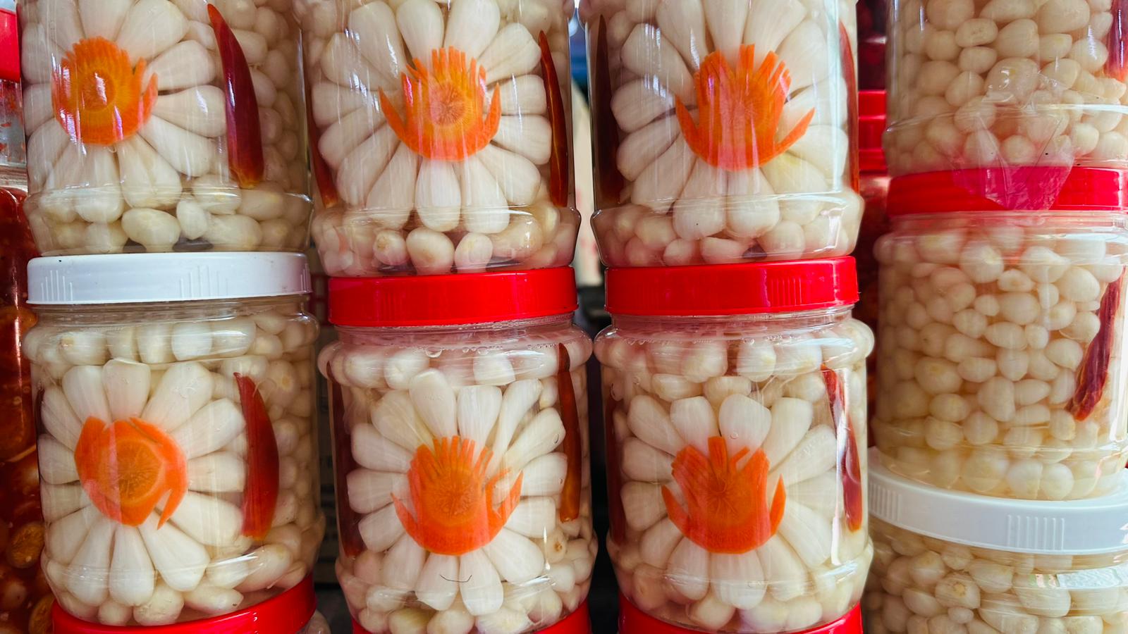 Riempire i vasetti con l'aglio ed eventualmente il peperoncino. Coprire con questa soluzione.