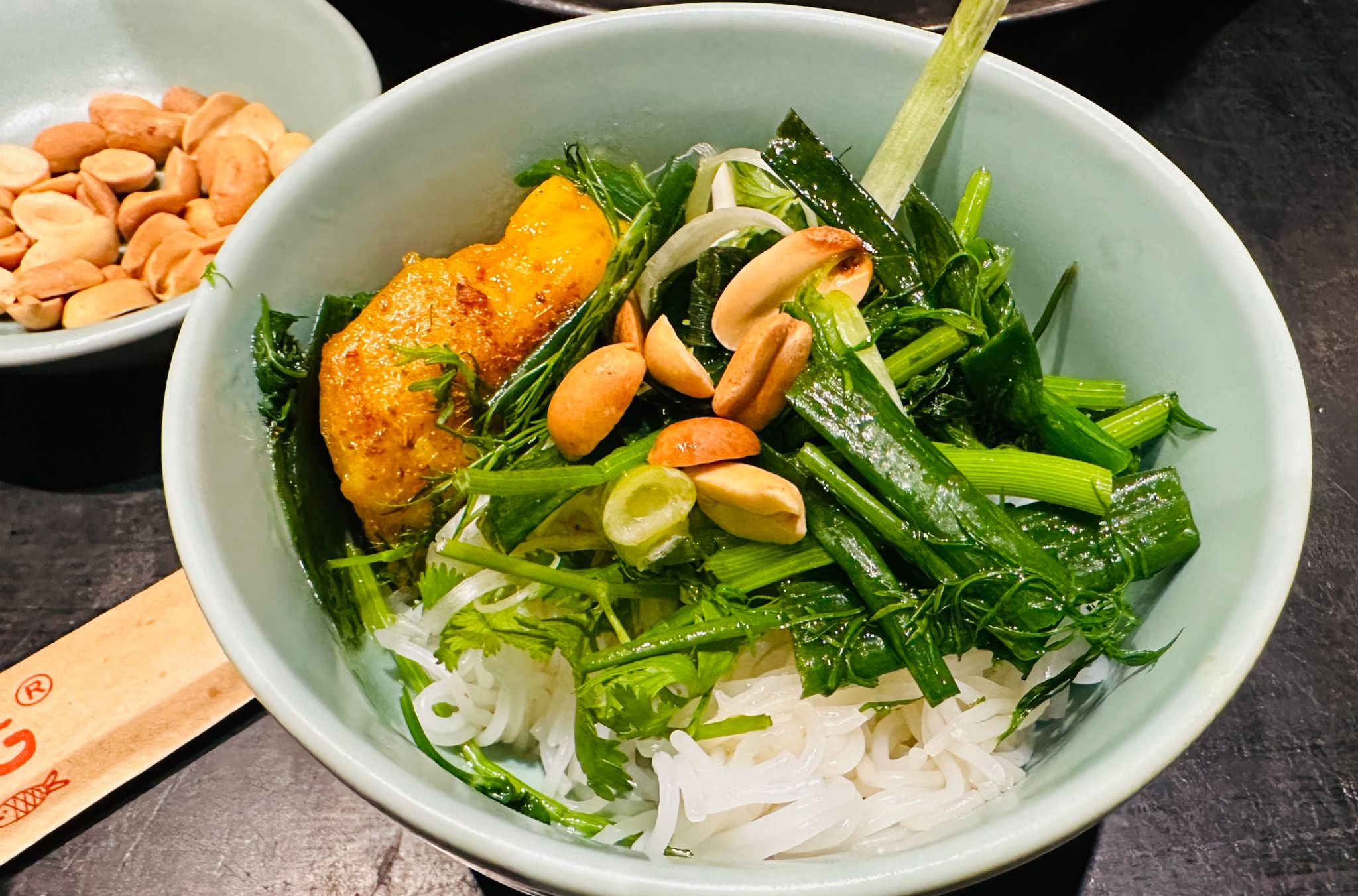 Il Chả cá Lã Vọng è uno dei piatti simbolo di Hanoi: pesce gatto marinato con curcuma e galanga, grigliato e poi saltato, servito con bún (vermicelli di riso), abbondanti erbe fresche e arachidi.
